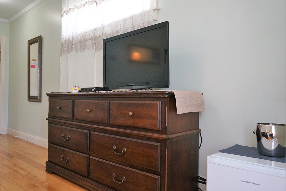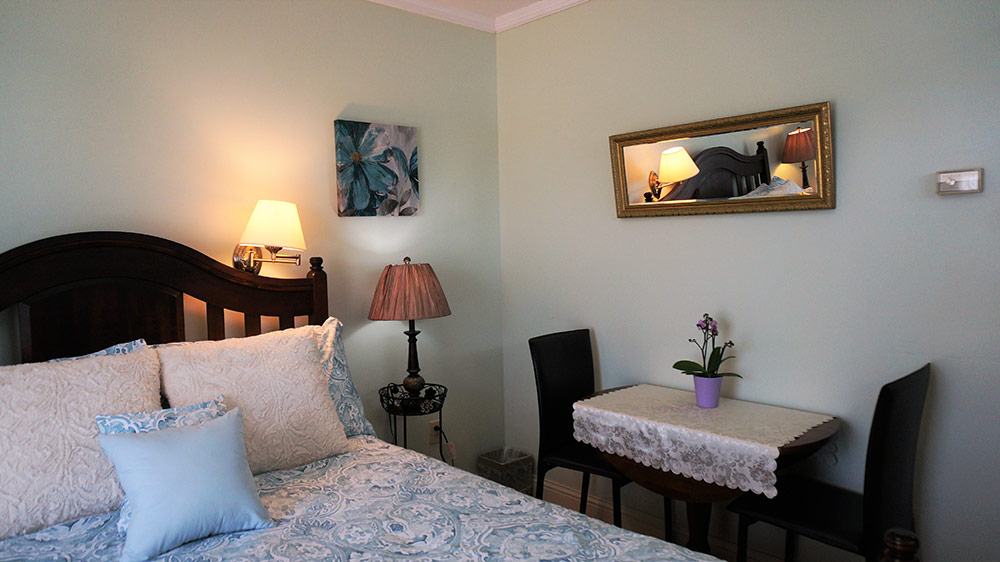 Located on the first level with a view of Charlottetown Harbour and the Hillsborough Bridge. Features: queen bed, hardwood floor, flat-panel TV, sitting area, en-suite bath with shower. Colour scheme: ivory, burgundy, gold.